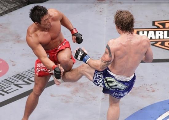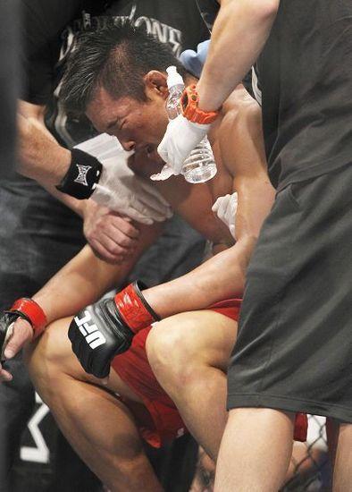 日前,UFC综合格斗冠军赛第116期在美国拉斯维加斯进行。韩裔日本柔道家“反骨柔道王”秋山成勲在优势局面下第三局被美国人克里斯-勒本击败,后者的三角锁险些将秋山勒晕,日本名将拍地认输。