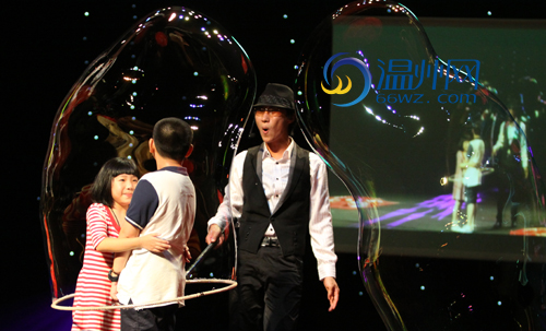 核心提示:昨晚,“打开艺术之门”之四——韩国泡泡魔术表演《魔幻泡泡秀》在温州大剧院上演,来自韩国的J&K剧团别具一格的泡泡表演带小朋友们进入了一个其乐无穷的欢乐世界。