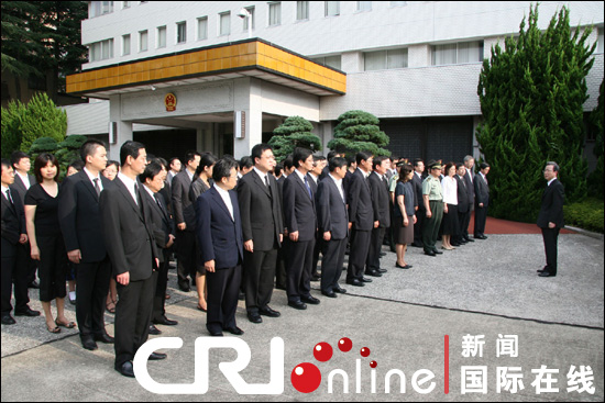 中国驻日本大使馆举行哀悼甘肃舟曲遇难同胞升旗仪式