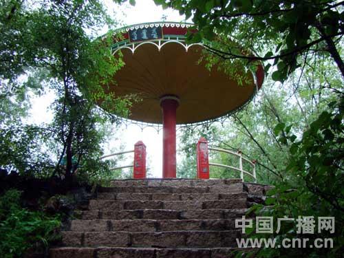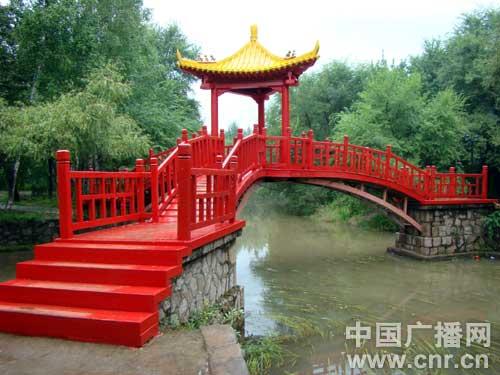过了吊桥走不多远便又是一座桥,该桥为三段桥拱对接而成,拱顶有亭,流水从桥下潺潺流过。人站于碧波之上,听流水潺潺,极目远望,转身360度都是一处不同的景。桥、水、树构成了这座园林的生命,亭、榭、阁构成了生命体中的一频一笑。车友在园内相继观光了 一柱亭、观神台、花苑、动物园等景点,之后带着意犹未尽之感,继续前往第二站鹿鸣山庄。
