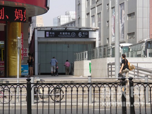 天潼路站的各出入口附近加设了一批引导标志。新民网记者陆俊彦 河南北路现场回传