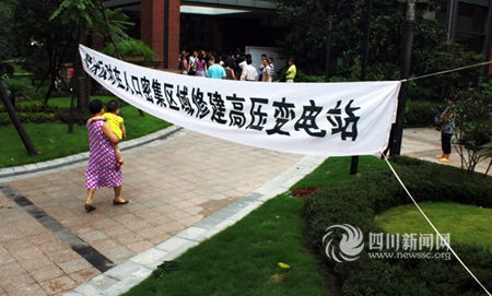 业主挂起横幅反对修建变电站