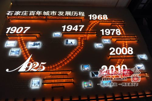 门前墙上的壁画用图片讲述石家庄1907年到2010年的发展历程