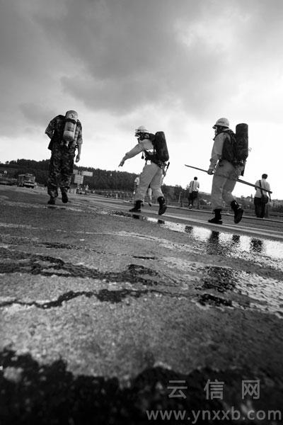 穿戴全身防护装备,背着压缩空气管,消防队员进入事故车辆底部,“嗤嗤”的呼吸湮没了甲醛“哗哗”的落地声。甘平看了看表,“现在已经过去50分钟了,等到阀门被关住,路面隐患排除,估计下午两点就能通车了”。