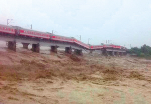 8月19日15时15分许,水害致宝成铁路德阳至广汉间石亭江大桥倾斜。行至该处的西安开往昆明K165次旅客列车司机发现险情后,紧急停车,列车工作人员迅速组织车上约1300名旅客撤往安全地带。经确认,没有发生人员伤亡。