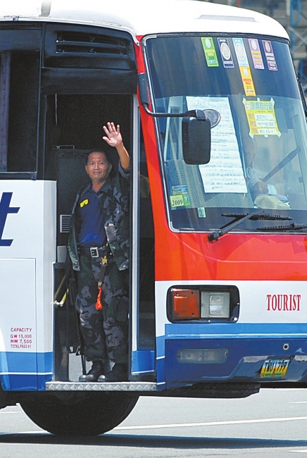 23日下午3时后,一点动静也没有,车上乘客也三不五时拉开窗帘,探向窗外,但紧张气氛有增无减。警方人员也来来回回上前谈判,劫匪的女儿,则写信要求父亲弃械投降,但多萨通过手机和弟弟通话,甚至要求媒体出面,也有记者自愿上车跟劫匪对谈,救出受伤的人质不过,菲警方均不愿放行,要求一切以人质安全为上。劫匪门多萨一度站在旅游巴的门外向记者招手,清楚看到他手持的M16步枪。