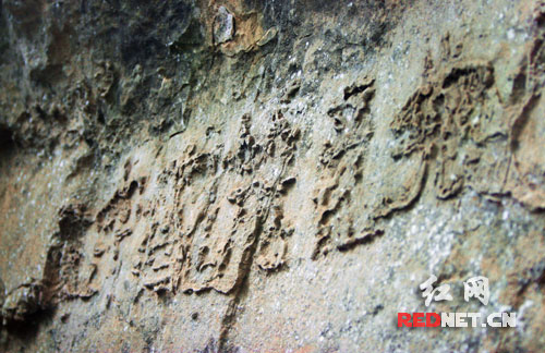 (显现“中国共产党”五个大字的藏字石,形成于2.7亿年前。资料图)