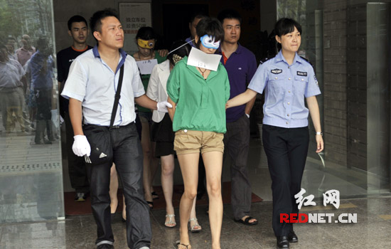 长沙公安民警成功捣毁一诈骗窝点后,将犯罪嫌疑人带离。