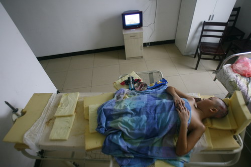背部创作至今未愈,魏武斌只能整天躺在病床上。