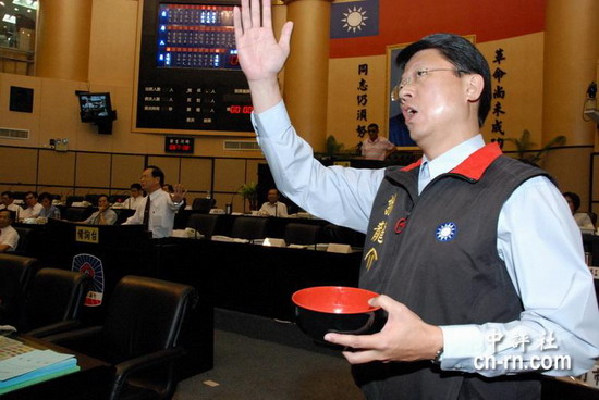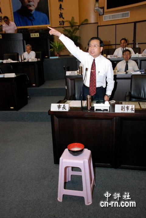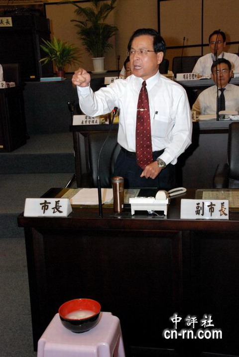 台南市长许添财对眼前这碗圆仔汤动怒。