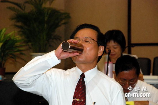 质询炮火猛烈的谢龙介,也要不时补充茶水,继续与许添财唇枪舌战。