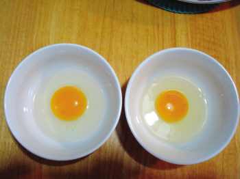 谈到如何区别鸡蛋是否“本地”及其质量好坏问题时,市畜牧兽医局副局长王柏强支招:看个头,普通的要大,每公斤只有14个左右,本地鸡蛋相对较小,每公斤有20多个;看蛋壳,普通的蛋壳粗糙、颜色统一,本地鸡蛋的蛋壳相对平滑、颜色不一;看蛋黄,本地鸡蛋的蛋黄相对较小,相对要红一些,蛋黄紧凑的,甚至可以用筷子夹住,说明鸡蛋很新鲜,蛋黄松散的多为放置时间较久的蛋;看蛋清,普通的蛋清很薄,多呈水状,本地鸡蛋的蛋清相对要稠很多,颜色深一点。