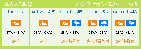 明日白露申城仍将维持34℃高温 10日后雷阵雨来袭