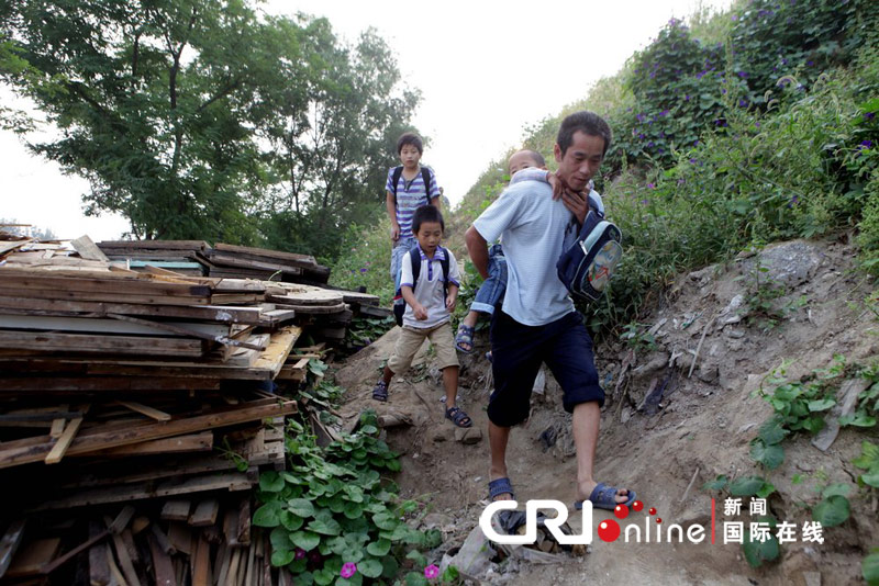 “每走一步都要特别小心。”一名十几岁的学生说,对面过来人,只能侧着身子走。不少家长都是带孩子走“山路”,一位家长背着6岁的儿子,背上的孩子用力抓着爸爸的衣服。“孩子太小,自己上学太危险。”这名家长说。