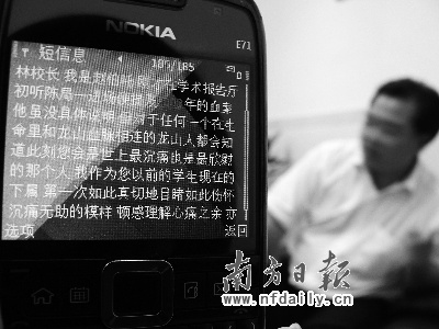 9月5日,在办公室接受南方日报记者采访期间,林群生收到陆丰市人大副主任、原主管教育的副市长林棠棣发来的短信。短信连用了4个叹号:“你的道义凛然跃然纸上(指报纸报道)!屈辱终得以雪!亮节终得以彰,告慰他人!令我等肃然起敬!”结语是林群生常念叨、佛教中常讲的一句话:“善有善报。”