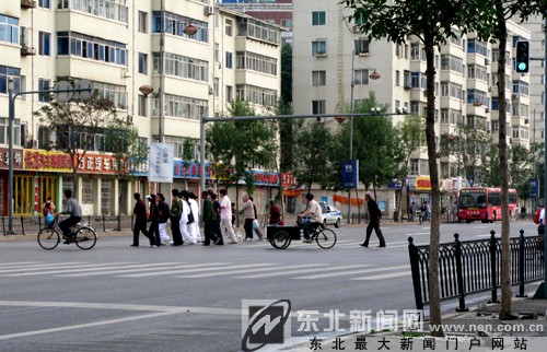 由于南京北街是双向八车道,路面很宽,所以行人过马路需要走一段时间。晨练的市民大多以上年纪的老人为主,腿脚不便,行走很缓慢,这也大大的增加了过马路的危险系数。记者在路口站了将近20分钟,就听到几次的急刹车声音,路况险象环生。共3页。
