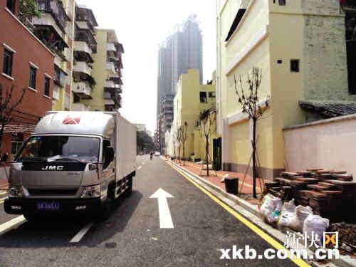 昨日,记者在街坊的指引下来到这条新路,路面已扩到近8米宽,铺好沥青的路面上还标注了单向两车道的车行线。虽然新路还没架起路牌,但道路两旁各种路引标志已安装完毕,也有部分车辆停在道路的两旁。“这条路铺好已经一个多月了,以前是只能通行人和单车的石板路,现在可以走汽车了,可惜往丛桂路这边通,往蓬莱路这边不通。”街坊李伯说。
