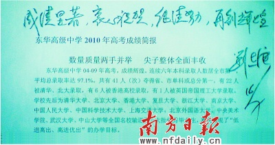 广东省2010年普通高考招生录取工作已经结束。东华高级中学第七届毕业生参加高考,再次取得令人瞩目的成绩。