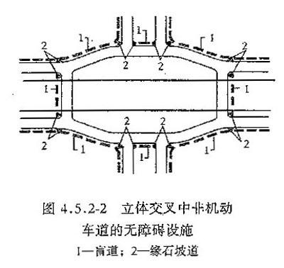 4.5.4 桥梁、隧道和立体交叉的缘石坡道与盲道的设计应符合本规范第4章第一节与第二节有关规定。