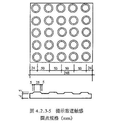 6 提示盲道触感圆点规格应符合表4.2.3-1的规模 (图4.2.3-5)。