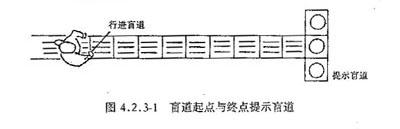 1 行进盲道的起点和终点处应设提示盲道,其长度应大于行进盲道的宽度 (图4.2.3-1);