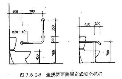 7.12.5 卫生间无障碍设施与设计要求应符合表7.12.5的规定(图7.12.5)。