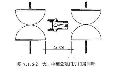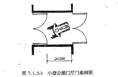 7.1.5 入口门厅、过厅设两道门时,门扇同时开启最小间距应符合表7.1.5的规定 (图7.1.5-1, 图7.1.5-2)。