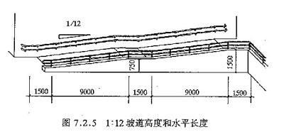 7.2.6 1:10~1:8坡道应只限用于受场地限制改建的建筑物和室外通路。