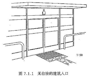 7.1.2 公共建筑与高层、中高层建筑入口设台阶时,必须设轮椅坡道和扶手。