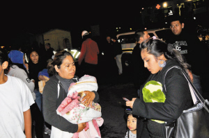 蒂娜·迪奥亚当时正跟孩子呆在家中。她说:“我先是听到像飞机低空飞行时制造出的那种声音,然后突然一下,整个房子抖动起来。”