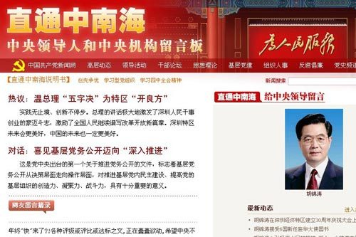 中国共产党新闻网推出“直通中南海”留言板(组图)