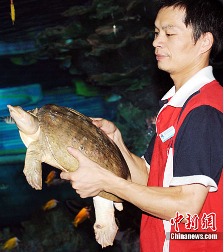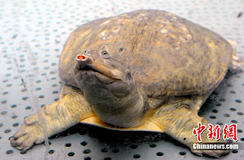 9月13日,一只国家一级保护野生动物鼋首次惊现福建闽江流域。据悉,这只体长50厘米,体重约5.6公斤的鼋是福州一市民在闽江垂钓时误捕的。由于这只鼋体表受伤,福建省海洋与渔业执法部门将鼋送至福州左海救护中心治疗,待伤口痊愈后再放归大自然。