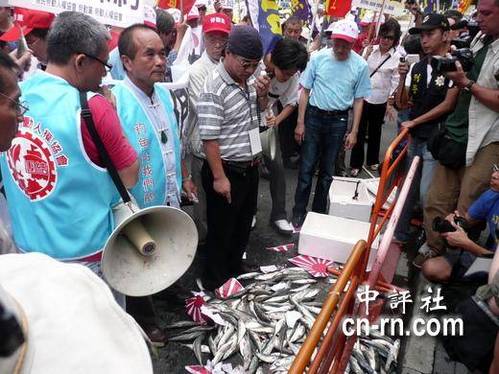 保钓团体带了一箱鱼来抗议。(中评社倪鸿祥摄)