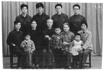 1980年我(二排左2)从广西南宁回家探亲时的合影,爸爸(二排中)妈妈(二排右2)大姐(二排左1)二哥(后右2)。
