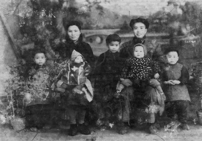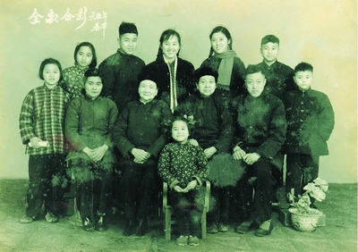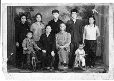 1965年春节祖母和父亲、母亲、大姑母及八个孙儿孙女照的全家福。柳建球供照