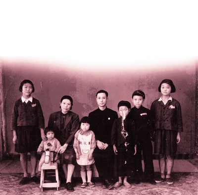 1944年,我和我的先生相识并结婚,年轻时的他十分帅气,毕业于黄埔军校,曾在长沙绥靖公署任职。解放前后,我们共哺育6个子女,这是1958年在武昌照的全家福。姚建龙供照