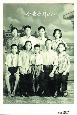 这张照片拍摄于1951年,是我的父亲母亲带着我们在长沙著名的庐山老照相馆照的“三十岁之我家”。照片中父亲抱着我,母亲抱着刚出生的弟弟,中间是大哥,两边是二哥和三哥。吴放军供照
