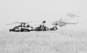 ■ 参加“和平使命-2010”军事演习的中方直升机抵达哈萨克斯坦马特布拉克训练场 新华社记者 王建民 摄