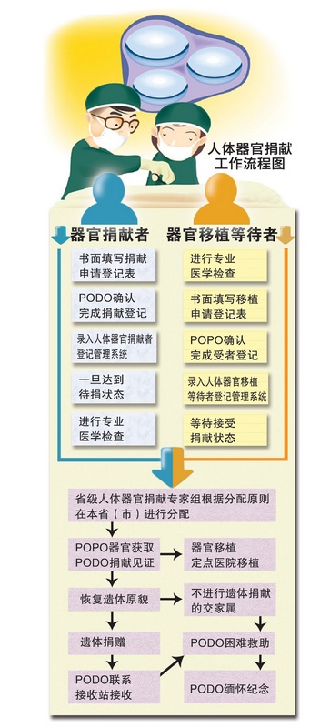 据省红十字会常务副会长曾凡国介绍,原则上,省级人体器官捐献专家组根据分配原则在本省(市)进行分配。本省内没有合适受者的,则将此信息上报中国人体器官捐献办公室,由国家、省两级人体器官捐献办公室共同在全国范围进行调配。省级人体器官捐献办公室要对器官捐献和移植的全过程进行见证。