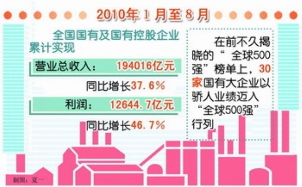 2008年下半年以来,面对国际金融危机的冲击,在保增长、保民生、保稳定的关键时期,国有企业充分发挥骨干作用,为实现经济回升向好作出积极贡献。今年以来,国有企业作为经济回升向好的主战场,生产经营持续稳定增长,各主要行业实现利润继续保持较快增长态势,改革发展迈出新步伐,创新研发进一步加快。
