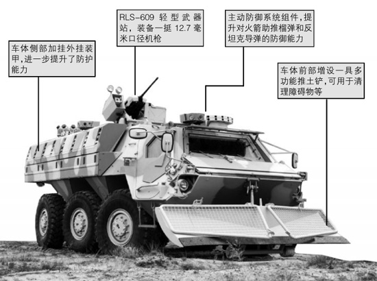 “狐”式装甲车的基础型号长近7米,宽约3米,重22吨。“狐”式装甲车全车可抵挡7.62毫米口径武器射击,加挂附加装甲厚,可抵挡12.7毫米口径和14.5毫米口径武器攻击。(何西)