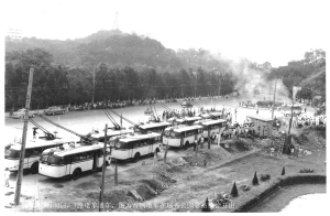 1960年9月30日,1路电车通车,图为首辆电车在越秀公园总站徐徐开出