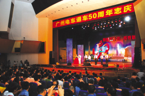 今天,广州电车通车庆祝大会在东方宾馆隆重召开,举办通车50周年庆祝文艺晚会。广州市电车公司历任领导、企业各级先进工人代表、为广州电车事业做出贡献功臣们欢聚一堂,对广州电车通车50年来的成就、经验进行总结,并对广州电车未来的发展跨越进行展望。