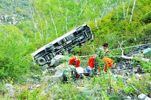 旅游中巴车坠沟 1死12伤