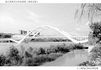 元通大桥位于城关区中山桥以东约800米、城关黄河大桥以西约920米处,是一座南北走向横跨黄河、连接城关中心区与盐场分区的一条具有集散交通功能的城市桥梁。工程计划建设总投资为1.6亿元,按下承式连续梁拱组合桥形式设计。大桥全长459米(主桥长306米,引桥长153米),桥宽26米,桥面按照双向四车道及非机动车道、人行道及观景平台布置。