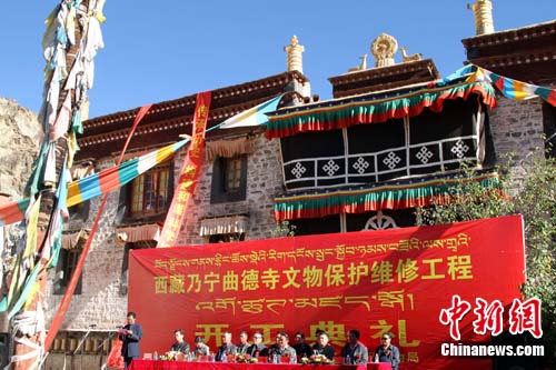 中新网日喀则9月29日电 (记者 徐长安)西藏自治区文物局和日喀则地区文物局29日在江孜县乃宁曲德寺(简称乃宁寺,又称南尼寺)举行乃宁寺文物保护维修工程开工典礼。据悉,国家计划安排人民币845万元实施这项保护工程,以保护这座有着优良爱国传统的重要寺庙。
