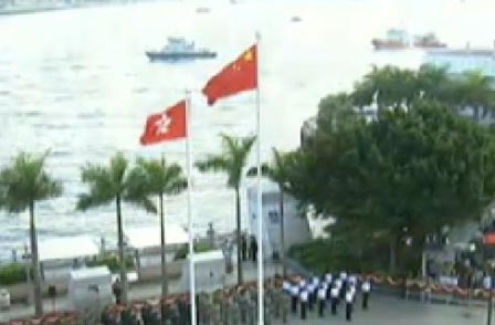 香港警察银乐队奏乐,国旗及区旗升至旗杆顶,飞行服务队在上空飞过,消防船在维港射水敬礼。现场有过千人观礼,包括香港及内地学校组团观看仪式,也有家长带同小朋友到场,感受现场气氛,表示希望让子女学习公民教育。
