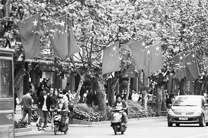 升国旗挂国旗 满城一片“中国红”