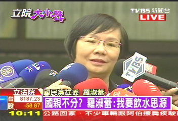 据台湾TVBS新闻报道,国民党“立委”罗淑蕾:“我是国亲合作之下,亲民党提名,宋主席提拔的不分区‘立委’,那人家提拔我们,饮水思源,一定要有情有义嘛,那假如宋主席去帮人家站台,打电话给我,叫我去作陪,我可以不去吗?我不去的话我就不是人了,我就没有情义了,毕竟政治还是要多一点情义,不要太那么冷酷无情。”