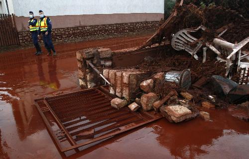 当天,这家铝厂储存有毒废水的池子崩塌,约70万立方米高碱性有毒废水涌入附近3个村镇,流进450多栋房屋中,含有重金属的强碱性废水烧伤接触者的皮肤,许多人不得不攀上屋顶等待救援。